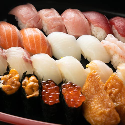 蒸し海老 / イカ / 小肌 / 玉子 / 軍艦カニ / 赤魚 / ままかり / たこ